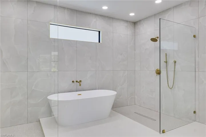 Spacious primary suite offers an oversized walk-in closet and a spa-inspired bath with double shower and freestanding tub. Guest bathroom features designer Zellige-style tile. 17 Seer Cooling system (high efficiency with heat pump) to help lower electrical bill. Outdoor condenser unit is factory-coated for corrosion resistance, making it suitable for coastal or saltwater environments.