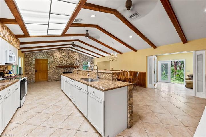 This unique custom ranch home is a 3bed/2.5 bath + den and sits on a gorgeous 5-acre lot. The home features vaulted ceilings with cedar beams, skylight, coral rock wall with fireplace, tile floors, granite countertops, breakfast bar, with lots of natural light in this wide open spacious floor plan. A new roof, hurricane windows and septic system were all installed in 2021. The home is surrounded with beautiful foliage and fruit trees. The grounds are breathtaking! You will find walking paths, horse trails, 4 cleared RV lots overlooking a lagoon, chicken coops, free range pen, 20′ X 40′ steel roof pole barn for outdoor equipment/vehicles and more. This private and very peaceful piece of heaven is located just east of I-75, 12 miles inland from the gulf of Mexico, 25 minutes to the International Airport as well as 25 minutes to some of the finest restaurants and shopping in SWFL! A true hidden gem!!!