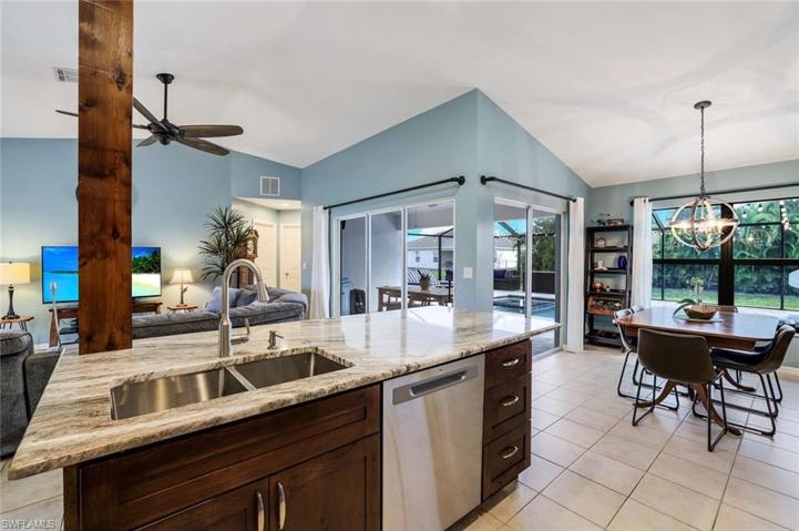 The Perfect South Facing Paradise Pool Home that includes 1 Year Home Warranty So There’s Nothing To Worry About! Please See Listing Supplements or Inquire For Everything Included in Warranty. This perfect home is centrally located to EVERYTHING: Short Walking distance to KOZA/Saladino Baseball Diamond Park with brand new playground, Best Restaurants, Banks, Supermarkets, Dentists, Doctors, Hospital, Car Wash, Home Depot and Lowes, Target, and Easy Access To Fort Myers and i75. This NEWLY renovated home has it all: New Kitchen, New Roof, New Appliances, New Bathrooms, and New Brick Paved Heated Salt Water Pool with Spa and automated water leveling. Appointed with tile throughout, Cathedral Ceilings, Matching Granite throughout, and 2 Large Bedrooms able to easily fit KING Beds with plenty to spare. No Flood Zone, All Assessments are paid extra high elevation make this a hurricane withstanding home. Plenty of room for entertaining family and friends so everyone can have a great time at your special occasion gatherings. South facing pool homes are the best during winter because your pool gets sun all day from sunrise to sunset. This home has it all! Avoid frustration & don’t waste precious time renovating a home or waiting for pool construction or worse waiting for new construction. Why wait when you can start enjoying what Cape Coral has to offer today without all those headaches. Setup your private showing today!!!!