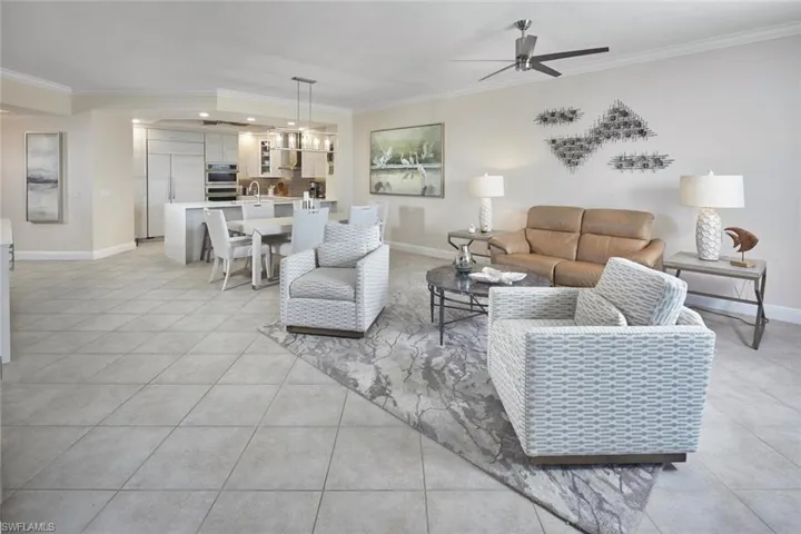 Perched on the 20th floor of Florencia at The Colony, this residence offers breathtaking panoramic views of Estero Bay, the Gulf of Mexico, and the lush fairways of The Colony Golf Course. Your private elevator opens into a welcoming foyer, where an open, light-filled floor plan showcases the spectacular coastal scenery. Enjoy vibrant sunsets from the spacious lanai and peaceful mornings overlooking sparkling water and emerald greens.In the heart of the home, a sleek kitchen features a stunning waterfall quartz island and integrated appliances that disappear into the modern cabinetry for a clean, sophisticated aesthetic. The open-concept design flows naturally into a dining area, which is anchored by contemporary lighting and an oversized window that overlooks the stunning views. The thoughtfully designed 3-bedroom, 3-bath layout provides privacy for guests and a serene primary suite with a spa-like bath featuring a soaking tub and separate walk-in shower. Florencia offers resort-style amenities including a lagoon-style pool, fitness center, theater, social rooms, guest suites, and onsite management. Residents of The Colony at Pelican Landing enjoy a private 34-acre beach park, tennis, pickleball, canoe and kayak parks, a community fitness center, and waterfront dining at The Bay Club. T Ideally located near shopping, dining, and entertainment, and just 20 minutes from SWFL International Airport.