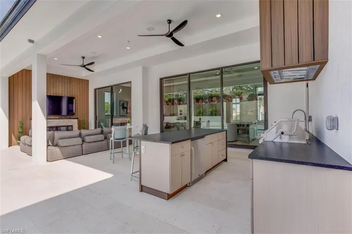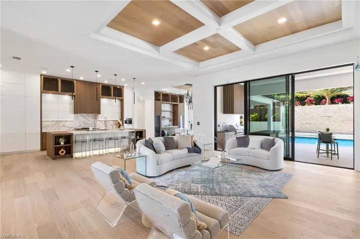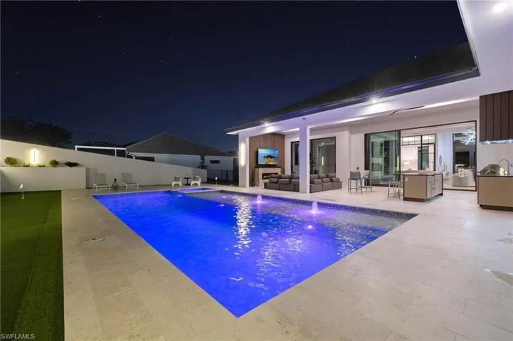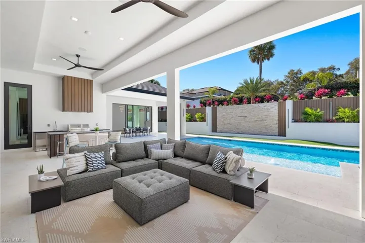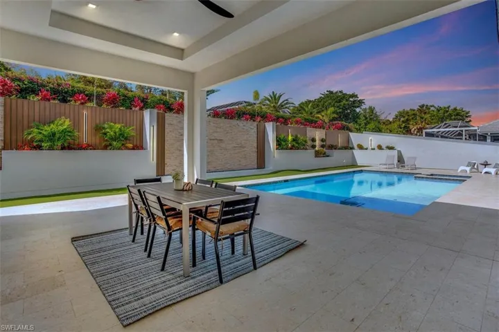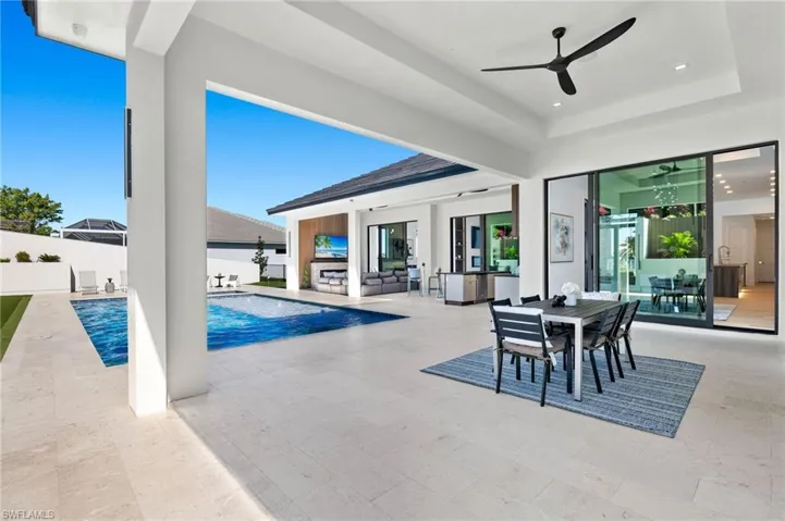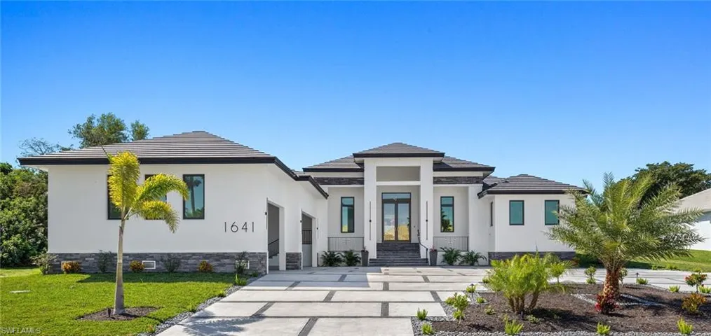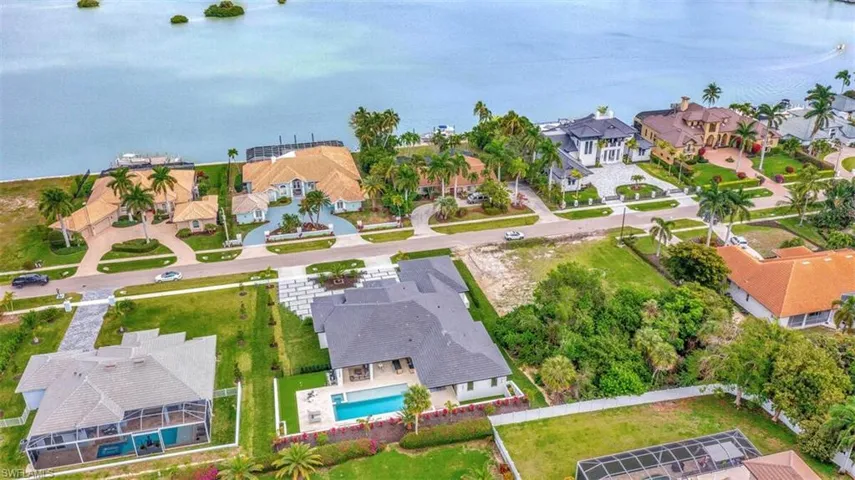 This Exquisite Brand New Construction residence is built on a 1/2 acre lot with Southern exposure, boasting a total of 6591 sq. ft. under roof. A true trophy property in the desirable Estates of Marco Island that exhibits resort-style living.
