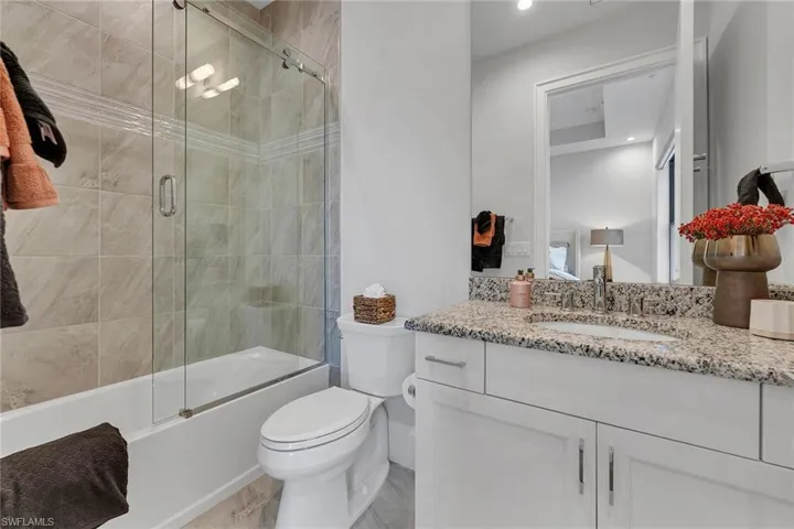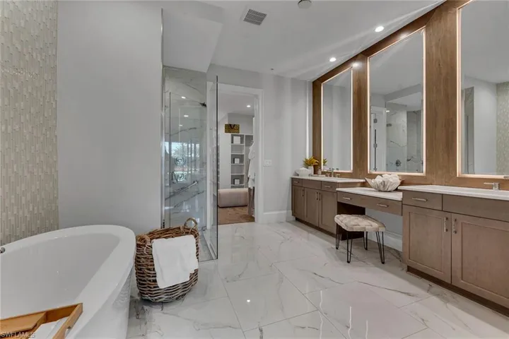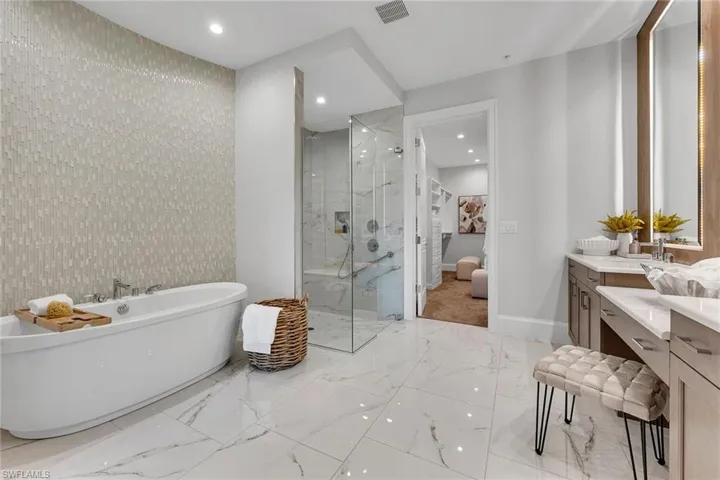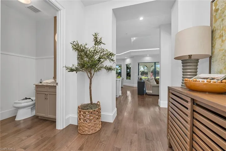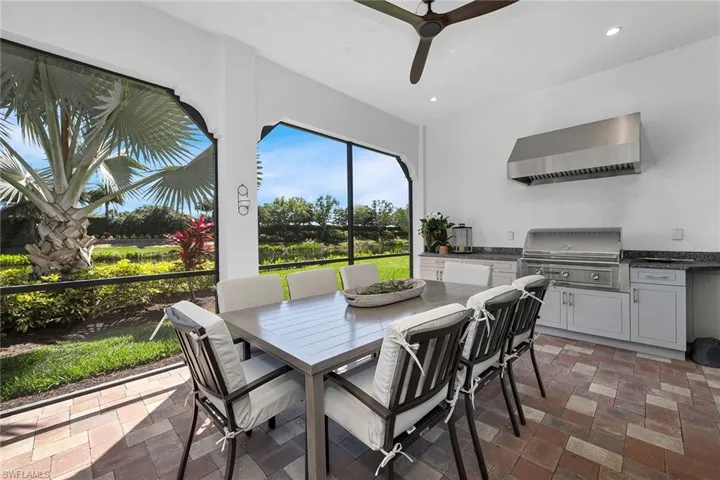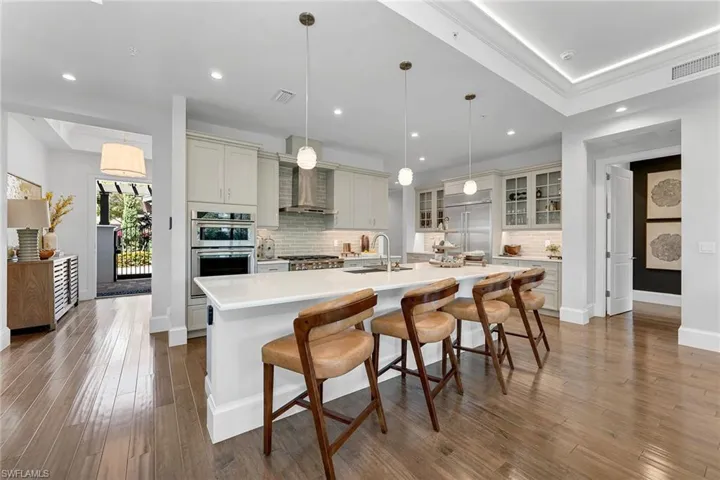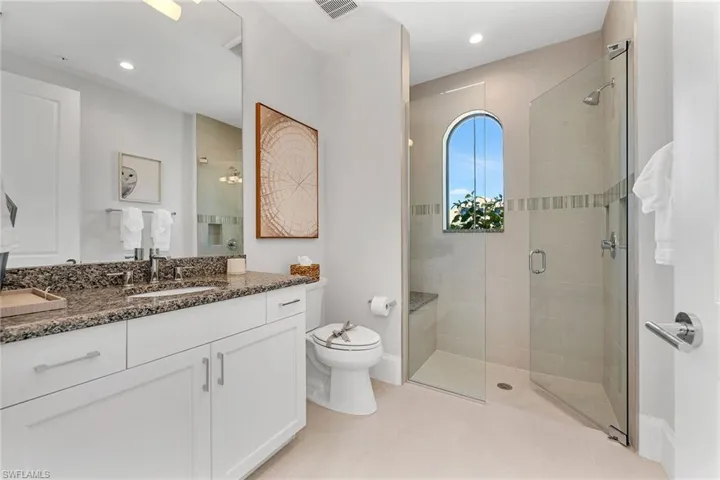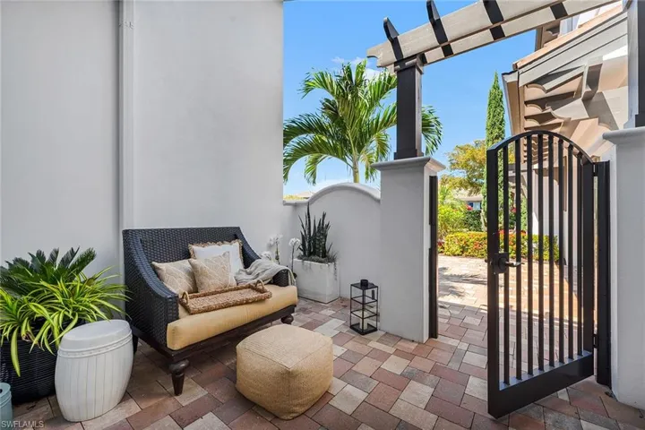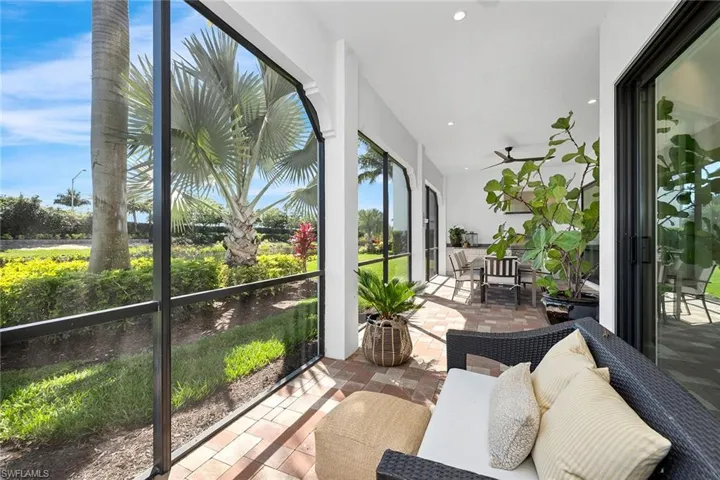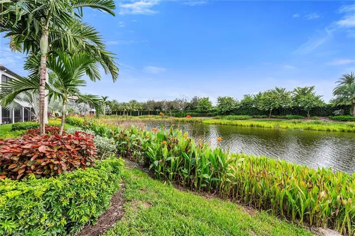Completely re-imagined single story, first-floor-villa that truly lives like a luxury single family home inside one of North Naples most sought after guard gated golf and tennis communities. This immaculate residence boasts three spacious bedrooms (all en-suites for complete privacy), four baths, rear Southern exposure and nearly 2,600 square feet of air-conditioned living space. Offering a blend of elegance and recreation, this open concept floor plan features large volume ceilings throughout, custom wood flooring, hurricane impact windows and doors, a private generator, and over 3,500 square feet of total lifestyle space all set against the backdrop of an award-winning golf course, world-class tennis facilities, fitness center, pickleball courts, clubhouse, casual & fine dining, lap and resort-style pools and a serene spa for total relaxation. The attention to detail in design and construction is evident in every corner, creating an atmosphere of timeless sophistication. With panoramic lake views and privacy second to none, this is a sanctuary where one can unwind in style. Currently fully staged with all furniture and accessories available. Other features include a private two-car garage with brick paver entry, a chef’s kitchen with gas cook-top and outdoor grill, and a charming entry courtyard for seamless indoor/outdoor entertaining. A must see for those desiring peaceful lake views and a simple luxurious residence that will stand the test of time. Will not last long.