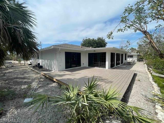 Welcome home to 1105 Skiff Place! Located on a spacious 1/4 acre lot towards the end of a quiet cul-de-sac road, this property represents the best value purchase available to build out your dreams of East end water front living on Sanibel Island. The homes solid concrete block + Stucco construction stood up to Hurricane Ian, the impact windows and sliders are all intact, the 8 yr old shingle roof should have years of life left, the dock on the Gulf access canal behind the home is in place, and the interior was professionally remediated after the storm. This property is ideally located near the shared use path, the shell laden beach, world famous Sanibel Lighthouse, and quaint East End shops and dining. Very quick and convenient on/off island access via the Sanibel Causeway or by boat. Opportunity and choice are luxuries, and here you have both; Explore your opportunity to rebuild the existing home to your tastes, choose a local architect to reimagine/build a new island haven, or simply hold as a strategic investment and be part of the Sanibel build back legacy! Sanibel values are sure to continue upwards and this opportunity will prove to be a tremendous addition to any portfolio.