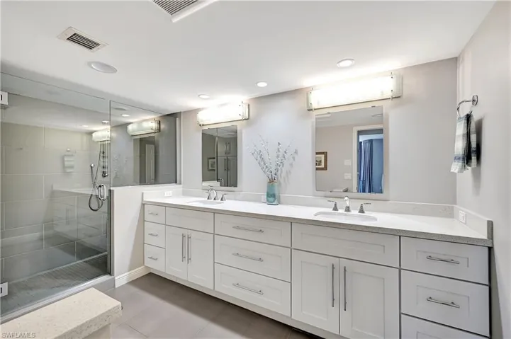 Classic Coastal remodel. Immaculate condition and shows like a dream. This spacious 2 bedroom 2 ½ bath condo is open and bright. All rooms open on to balcony overlooking the sparkling waters of the Gulf of Mexico. Some excellent interior features include tile throughout main living areas, recessed lighting, newer white kitchen cabinets with loads of drawers, hard surface counters, under mount sink, glass tile backsplash, pantry cabinet and laundry room in kitchen. The excellent floor plan features 2 suites both large enough for king size beds and each with en-suite bath. The main suite bath has double vanity, large walk-in shower and lots of extra storage. Both bedrooms have nice sized walk-in closets. The well thought out furnishings and lighting bring the whole décor together. Furnished with some exceptions. This condo also has air-conditioned storage space on the 7th floor and covered parking.