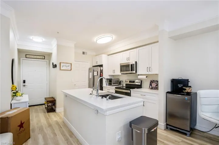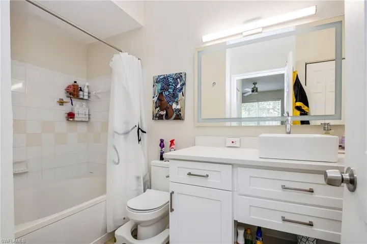 One or more photo(s) has been virtually staged, AI generated or rendered. Impressively renovated from top to bottom, this 2-bed, 2-bath second-floor residence in Royal Greens at Gateway showcases a fresh, modern aesthetic paired with thoughtful upgrades throughout—all completed in 2023. The fully redesigned kitchen anchors the home with sleek quartz countertops, stainless steel appliances, designer lighting, and chic contemporary hardware. Both bathrooms have been beautifully updated with vessel sinks, stylish lighting, and new vanities topped with quartz countertops, creating a cohesive and elevated finish throughout. The primary suite features a custom-designed closet for optimal organization, and the in-unit washer and dryer adds everyday convenience. Generously sized bedrooms, a spacious living area, and a screened lanai create a comfortable, easy flow for both relaxing and entertaining, while the second-floor location enhances privacy and natural light. Royal Greens offers a vibrant, amenity-rich lifestyle designed for both relaxation and connection. Residents enjoy a heated resort-style pool, a fully equipped fitness center, indoor basketball court, clubhouse with event space, theatre room, library and business center, and a gated pet park. Serene courtyards with fountains provide peaceful outdoor spaces, creating a true sense of community and retreat. Ideally located just minutes from JetBlue Park (Boston Red Sox spring training facility), approximately 10 minutes to Southwest Florida International Airport, and with quick access to I-75, this condo places you at the center of it all—near shopping, dining, and everyday conveniences. Offering the perfect balance of modern updates, prime location, and exceptional amenities, this residence is ideal as a full-time home or seasonal retreat.