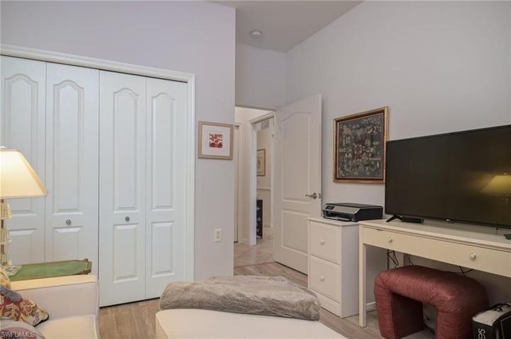 Welcome to fabulous! Rarely available Stoneybrook 2+den / 2 bath oversized 1 car garage awaits. Breathtaking lake /golf course views with both front & rear patio’s that make entertaining a pleasure. Extensive updates are tasteful & sophisticated including new interior paint, decorator lighting throughout, diagonal tile in living areas, luxury vinyl floors, Plantation Shutters, custom built in closets, crown molding and chair rail moldings. New Kitchen quartz countertops w/ undermount sink, custom backsplash, white raised panel / glass kitchen cabinets and new decorator fixtures overhead. Plus all new kitchen appliances. The Master & guest baths boast new quartz countertops, Murano glass bowl, custom sinks & mirrors. Windows / sliders are impact resistant glass. Additional features include new Roof in 2020, AC in 2022, new garage motor and new backflow valve in 2023. Stoneybrook offers a 24 hr guard gated with Resort Style community pool, Spa, Clubhouse, Fitness Room, Tennis, Bocce Ball, Pickleball, Volleyball, Basketball, Tot lot, close to fine dining, public golf course, FGCU, airport, shopping and beach. Please see https://stoneybrookestero.org for more community information