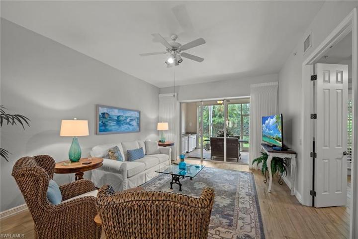 Welcome to Falling Waters. As you approach the gated community you will notice the impressive waterfalls and lush tropical landscaping! Proceed on Falling Waters Blvd passing the club house and amenities center onto Hidden Lake Dr seeing the Water Crest entries on your left. The 2329 building is on the very end. You have arrived at #7 located on the first floor. As you enter the property you will first notice the spacious kitchen that features beautiful granite counters, stainless steel appliances and Coretec luxury plank flooring. This flooring is installed throughout the 1566 SF two-bedroom, two full bath condominium. The dining/living area is very spacious measuring 14′ x 34′ and leads to the lanai which has a outdoor kitchen for grilling and entertaining, storm shutters and a relaxing view of landscaping and a water feature. The master suite has French doors that lead to the lanai and connects to the master bath which offers dual sinks, jetted Roman tub, shower and a walk-in closet. The guest area has a bedroom/den with a sleeper sofa. The friendly community offers many amenities and