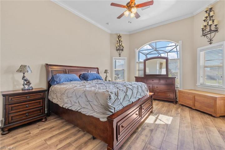 Check out your half acre slice of paradise! This stunning 4 bed + den, 2.5 bath property is waiting to welcome you home! With over 2200 sq ft it has enough space for everyone in the family. The roof and A/C are both brand new (2023), and it’s not located in a flood zone, so you won’t have to sweat the big stuff. The kitchen has granite countertops and 2 pantries. It overlooks the living room with 2 triple sliders to the lanai. The primary bedroom has an ensuite that features 3 walk in closets, dual sinks, and a separate shower and jetted bathtub. There is also a separate entrance to the lanai from the primary bedroom. The oversized screened in lanai boasts with 1400 sq ft. and has a heated pool and spa! There is plenty of space to turn this into your private oasis with loungers, patio furniture, grills, firepits etc. There is also a pool storage closet AND a half pool bathroom off of the lanai! This property is combined with the lot in back of it and has been fenced in to create a gigantic backyard with plenty of room for playsets and trampolines with room to spare for your kiddos and fur babies to run around.
