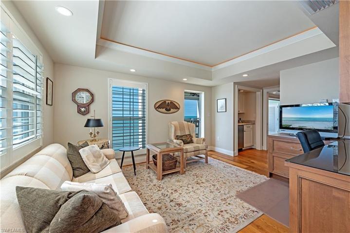 Indulge in luxurious living with this exquisite haven in the sky at 5S inside The Whitehall. This west-facing, corner unit unveils direct Gulf views, boasting 3 spacious bedrooms, a den, 5 lavish bathrooms, a living room, plus a family room. Impeccably renovated with top-tier appliances and ample storage, the residence embodies luxury. Nestled among Naples southernmost condos, The Whitehall offers close proximity to 5th Avenue dining and shops, and is just north of the new Four Seasons Hotel. With only 16 exclusive residences, covered parking, a generous storage unit, beach access, and a saltwater pool, this private haven is both a perfect primary residence and an ideal vacation retreat.