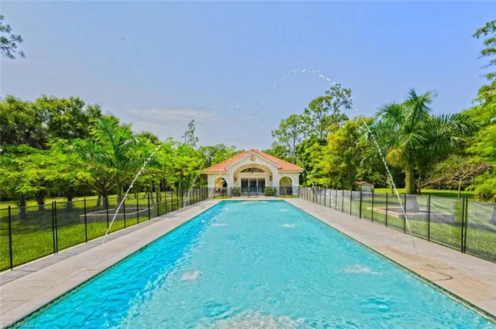In the heart of Logan Woods, nestled on a sprawling 5.88-acre lot, you’ll find this Custom-Built Spanish Colonial estate home and guest home located at the end of a cul-de-sac on Tamarind Ridge Drive. The primary home includes 4 bedrooms plus a den, 2 1/2 bathrooms, a laundry room and a 4-car garage with a breezeway leading from the garage to the home. The guest house was added in 2016 and is a comfortable retreat with its cathedral ceiling offering lots of natural light in the open living area, it also offers a modern kitchen, 2 inviting bedrooms, 2 full bathrooms and a convenient laundry area. Both homes exude a charm of their own and include impact resistant windows, sliders and doors for peace of mind and security. The main house features a chef’s dream kitchen with an abundance of wood cabinets including drawers, spice organizers, spacious granite countertops with an expansive center island, Stainless-Steel appliances, breakfast bar, nook area and an elegant adjacent dining room all offer comfort for guests while entertaining. The kitchen opens up to the great room making it a perfect space to entertain while displaying a fireplace TV wall. The great room transitions to the outdoor living space with impact resistant folding sliders leading to the spacious lanai which encompasses the whole rear of the home inviting the inhabitants to enjoy amazing views of the manicured tropical verdant lawns showcasing a spectacular fountain feature and the luxurious resort-style salt water heated custom lap pool with its elegant ambient lighting and water displays created by the deck jets. The primary home includes porcelain wood looking flooring and crown moldings throughout and plenty of convenient storage. The owner’s suite is a sanctuary of relaxation with a sitting area and His and Her’s walk-in closets with custom built-ins. The owner’s bathroom offers a spa-feel ambiance with a soaking tub, pebbled floor shower design and a Bidet. One bedroom features a large walk-in cedar wood closet, and the two other bedrooms have a shared Jack-and-Jill bathroom and roomy closets. Exquisite tropical landscaping adorns the grounds of this estate property and one of a kind homesite, which include tropical trees and a collection of exotic species while providing a park like setting with complete privacy in this fully fenced estate with two additional fenced in areas, providing sanctuary for beloved pets to roam and play freely. If you are looking for a perfect place to call home where you can imagine the rhythm of the city fading into the serenity of nature and where you can indulge in a leisurely swim or lazy afternoon surrounded by intimate and serene nature with complete privacy.