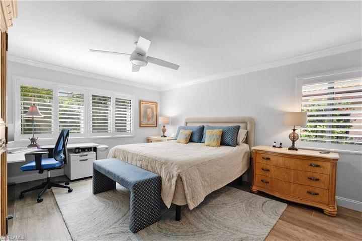 3 bedroom, 2 1/2 bath unit with super clean 2 car garage with epoxy floor and new door, cabinets and quartz countertops for extra storage. A new roof and a fully screened and pavered lanai and covered outdoor living area with new skylights to enjoy SW FL living along with new hurricane windows and sliding doors, a tankless hot water heater and new electrical panel. Interior boasts remodeled kitchen with quartz countertops, SS KitchenAid appliances and vinyl plantation shutters, crown molding and wood look tile throughout. Master has updated shower and jetted tub with custom closet with built in drawers and hamper. Conveniently located just steps from tennis courts and village pool. Other amenities in The Landings include full service Marina with boat docks based on availability as well as tennis, bocce ball, pickle ball, 18 hole executive golf course, fitness center, community resort style pool and two restaurants in addition to Picnic Point.
