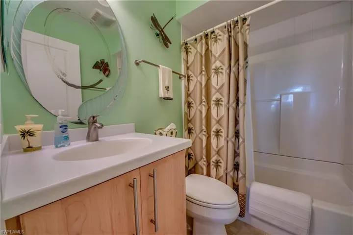 Great Views Of Jug Creek ( Back Bay) Pool & Tennis. Step in the front door ‘ Beautiful Tropical colors, tropical furniture & design and Views of Jug Creek (the Back Bay) PLUS A BOAT DOCK .. 40 years I’ve sold units at Bocilla Island Club, This is my first time in F building.. It has fantastic Views and is furnished so well…I love it and I want to keep coming back… Kitchen, dining, living, utility & 1/2 bath with porch area on 1st floor. Second floor has two master bedrooms, one for the Owner with double sinks and shower and the second has tub & Shower combo. Two parking spots under building with storage for bikes and fishing/boating equipment. There is a DOCK AND SLIP, “E” that goes with the sale !! There are 2-pools, tennis courts, Ship’s store and gas, Pier on Charlotte Harbor, lush tropical foliage… you would think you were in Key West, but even better you’re on Pine Island.. Visit this incredible property today !!!
