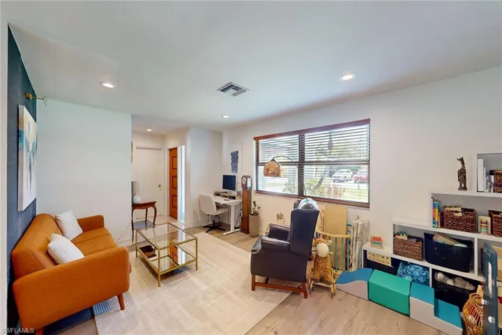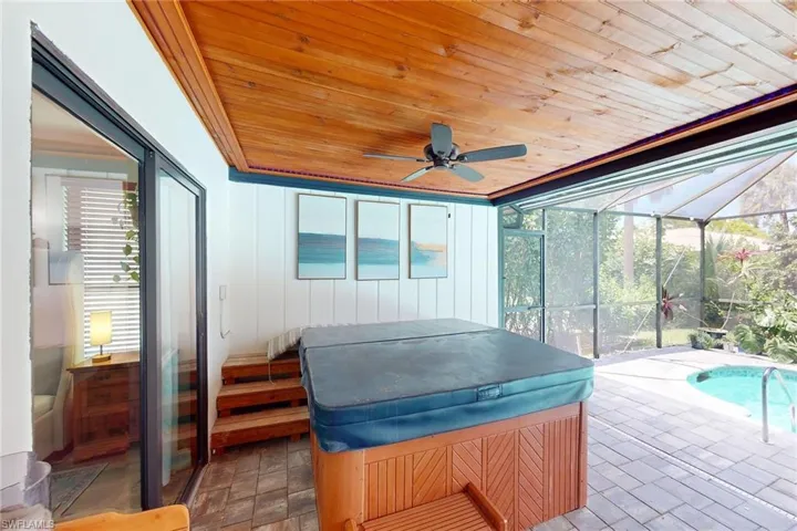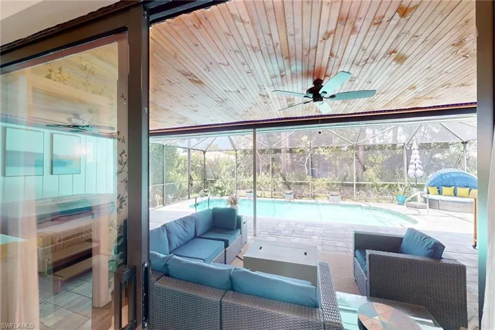 Welcome to your own private Naples retreat! This beautifully updated 3BR/2BA inland pool home blends modern upgrades with relaxed Florida charm. A step-free entry leads into a light-filled interior featuring an updated kitchen and guest bath, LED lighting throughout, and Alexa-enabled smart switches for effortless living. Enjoy peace of mind with major improvements already completed, including new hurricane-impact windows (2025) with lifetime transferable warranty, new electrical panel (2024), replaced main service line (2021), A/C (2019), and upgraded pest-resistant R-38 attic insulation (2025). Step outside to your tropical backyard oasis–perfect for entertaining or unwinding. The resurfaced pool and brand-new deck (2025) are complemented by a variable-speed pump with water features (2026) and new spa heater and controls (2025). Relax in the standalone spa, gather around the fire pit, or dine under the pergola draped in a stunning Queen’s Wreath vine. A lush clusia hedge provides privacy, while a citrus tree and spacious yard add to the home’s inviting outdoor lifestyle. Additional highlights include a new driveway and walkway (2025), custom tongue-and-groove soffits (2024), full irrigation system on well water, ample garage storage, and RV hookup. A true Naples gem offering the ultimate Southwest Florida lifestyle!