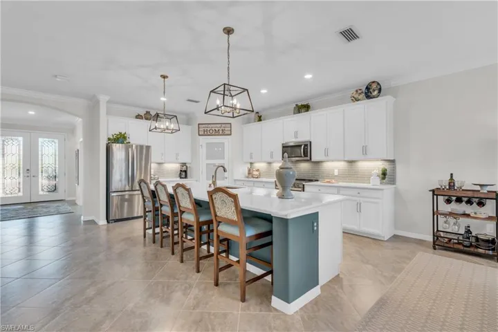 Step into Effortless Living in Naples! Meet your dream home at 4564 Tamarind Way, nestled in the vibrant neighborhood of Raffia Preserve. This mesmerizing move-in ready residence combines thoughtful design with premium upgrades, offering you the perfect blend of comfort and luxury. Savor the joy of culinary creativity in a state-of-the-art kitchen, boasting luxurious quartz counters, upgraded appliances, and a massive island perfect for both food prep and entertaining. Under cabinet lighting and a new tile backsplash complement the thoughtfulness of the design. Inside, the home comes alive with intricate details. Upgraded molding and tray ceilings exude elegance, while plantation shutters across the home ensure privacy and a warm elegance. Custom closets in the primary bedroom take the owner’s suite to the next level. Experience the bliss of upgraded showers in each bathroom, complete with new shower doors for an elevated look. Vertiglide blinds on sliding glass doors offer a dash of sophistication and ease. The added cabinetry in the laundry room, along with new carpeting throughout, elevates everyday living. Step outside to find your private oasis, enhanced with upgraded landscape lighting and an extended lanai space. The new shade screen ensures comfortable lanai lounging while having your evening glass of wine or watching your favorite program on your outdoor television. An outdoor summer kitchen, complete with vent hood and tile backsplash is perfect for alfresco dinners under the stars. Plus the home comes with the bonus of a 10,000 Watt generator. This home extends its delights beyond its walls. The clubhouse campus is a social hub, featuring a resort-style pool, 2,000 sq. ft. fitness center, and a basketball court. Nestled in the tranquil Raffia Preserve neighborhood, this home offers the perfect blend of community living with modern amenities. Make 4564 Tamarind Way your sanctuary in sunny Naples, Florida!