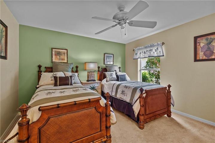 Large extended lanai provides plentiful space for your outdoor living enjoyment which includes gas fire pit table, ample seating & water fountain. New roof and A/C System in 2020. Electric hurricane shades for lanai area. The kitchen features maple cabinets with corian counters and newer fridge. Tile flooring in main living areas with carpet in bedrooms. This home has a SOCIAL LAKES MEMBERSHIP INCLUDED that provides access to all community amenities and pay as you play golf. Located in the highly desirable resort community of Colonial Country Club which offers 18 holes of Championship Golf, Remodeled Clubhouse with Bar & Dining, Fitness Center, Community Pool, Tennis, Pickleball, Bocce, Miles of Walking Trails & MORE! This community benefits from a convenient location, high quality amenities and moderate fee structure. YOUR NEW FLORIDA HOME IS READY FOR YOU!