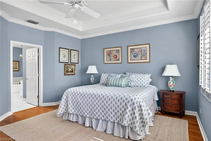 Vaulted ceilings, cathedral windows, durable but easy to maintain wood floors, elegant plantation shutters and wood moldings create a sunny, light-filled residence offering a tranquil lifestyle. The property sits in an X flood zone, so no flood insurance is required.