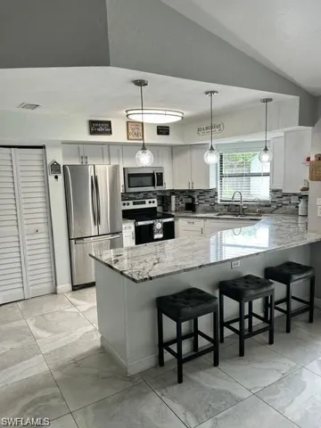 ** Motivative Seller** Exceptional opportunity in Naples—4 BED 3 BATH SINGLE FAMILY HOME fully fenced on a CANAL! MAINTAINED 1680 SQ FT UNDER AC! NO HOA FEES! CLEAN & MOVE IN READY! 2021 NEW ROOF, NEW SOLAR PANELS THAT WILL REDUCE YOUR ELECTRIC BILL. 2024 New AC, ducts, blown insulation and new water heater. 2023 New updated kitchen, remodeled 2nd bathroom, new tile throughout the house. LARGE YARD FOR THE KIDS & PETS TO PLAY OUTSIDE! Spacious Living/Dining room, with doors that open to a nice size Sun Porch overlooking the back. Large yard w/ small patio & view of landscape & canal. Room to Entertain Friends & Family. Both sides of the house are paved where you can park your boat, trailer or work truck. MASTER BEDROOM with Walk in Closet. Laundry room located in the main house. House has an Efficiency with a small kitchen with private entrance and patio (for extra income). MINUTES to schools, Shopping, Dining, Library, Medical, Boating, Great Wolf Lodge & the upcoming The Gate Gulf Club. GREAT INVESTMENT OR PRIMARY HOME! VERY GOOD INCOME PROPERTY.