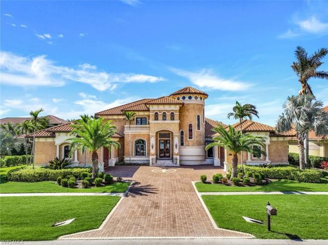 Custom-built bayfront residence in Marco Island’s prestigious Estates section with nightly sunset views. This 5-bedroom, 7-bath masterpiece showcases remarkable architecture and a whole-house generator. Enter through a 2-story cupola foyer with elegant appointments gracing every corner. The open living areas boast a statement fireplace, tray ceiling, and Gourmet Chef’s kitchen with double islands, custom gas range, breakfast bar and dining area overlooking the pool and bay with formal dining room nearby. An opulent ground level primary suite features a stunning custom bath, built-in closets, wood-lined study with a 2nd ensuite bedroom. Featuring a grand home theater, butler’s pantry, oversized laundry with pet wash station and stalls, and three generous en suite bedrooms on the second level with shared lanai. Indoor/outdoor living from sprawling retractable screened/storm shuttered lanai with chef’s kitchen, lounging, sitting, dining areas; pool, spa and sand beach make this an entertainer’s dream along with a pair of 2-car air-conditioned garages with 2 charging outlets each. Enjoy wide water views and phenomenal sunsets over Smokehouse Creek and direct access to Gulf waters.
