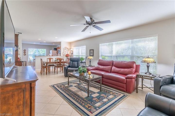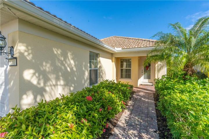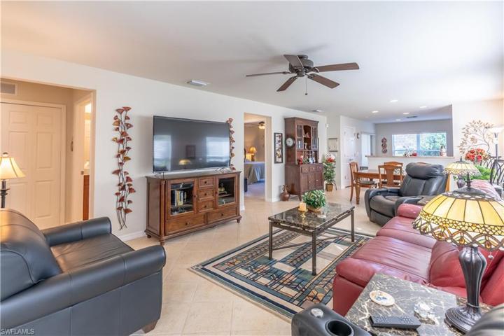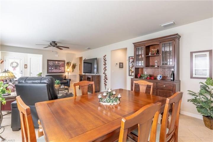 Accessed from the kitchen sliding door, the covered, screen enclosed, paver lanai borders a grassy expanse and looks onto water. Being offered at an exceptional price, this is a must see on your SW Florida home search.