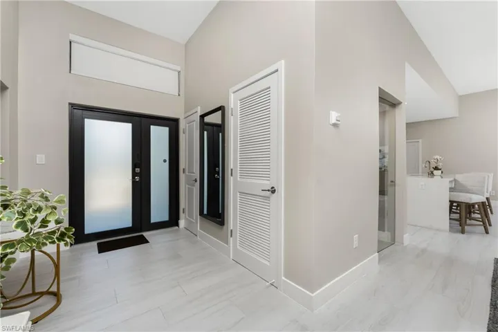 This brand new model home is ready for “you” to move in- with high end features you will not find anywhere else! As you approach, you will notice the striking stone facade, stately metal roof and rock beds with a pleasing tropical landscape. Step through the front door, where two sets of impact resistant sliding doors welcome in abundant natural light, while soaring 12’ ceilings and desirable open plan makes for great entertaining space for friends and family! The expansive Euro-style chef’s kitchen boasts a sprawling quartz island with waterfall-edge, full backsplash, Whirlpool stainless steel appliances, including a wall oven and cooktop and a walk-in pantry. Glass display cabinets compliment the striking kitchen and will allow you to add some panache with your favorite serving pieces, while wine enthusiasts will be proud to display their wine collection in the glass enclosed wine closet. The primary suite is a true retreat, offering a dramatic spa-like ensuite bath, with impressive full length marble wall tile which providing a rich backdrop for dual vanities, free-standing tub, glass enclosed shower, and a spacious walk-in closet. Step out to your outdoor living space through sliding impact doors to discover the screened, tiled lanai, with room for multiple seating areas and is finished with a summer kitchen. Three guest rooms plus two guest bathrooms will comfortably accommodate your family and visitors, and can comfortably provide for an office or exercise room. The attached three car garage sets this home apart from the competition, with an epoxy floor and EV plug. ONX Homes patented technology provides peace of mind through storm resistant features such as insulated concrete walls and ceilings built to withstand 175 mph winds, stem wall reinforced concrete foundation, double impact resistant windows, LGS trusses, and much more. ONX homes are also built with sustainability in mind, boasting energy star rated appliances, thermal insulation, smart HVAC system, and a built in EV plug. Located within the deed restricted community of Burnt Store Lakes, residents enjoy access to the community kayak launch, park with pavilion, playground and picnic tables – a great spot for a potluck with the neighbors. Burnt Store Marina is just a golf cart ride away, where a public golf course, two restaurants and deep water marina await!