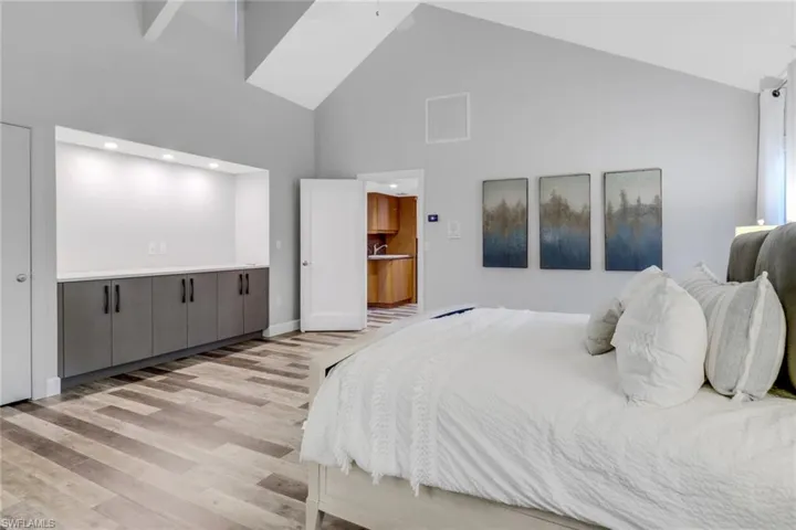 One of a kind waterfront property with 175 feet of river frontage taking you to the gulf of Mexico. 4 Bedrooms +Den/big entertainment area, 3.5 Bathrooms two story home, oversized two car garage with extra storage and pool. This is the ultimate Florida entertainment dream offering a great outdoor space with spacious pool, fire pit area with views of river as well as a boat dock you can keep your water toys. The interior of the home is completely remodeled with exquisite finishes. Starting out you are welcomed by large double doors into your foyer that leads to top of the line white oak stairs, 3 AC units 2018, roof 2018, new water heater, updated laminate flooring throughout main living area and epoxy concrete downstairs giving the home a modern touch. The gourmet kitchen offers granite counter tops and backsplash, convection cook top, stainless steel hood and appliances as well as custom cabinets with an enormous amount of storage space, in addition to the under cabinet lighting. Right off the kitchen is your convenient laundry room with sink and folding area and plenty of storage cabinets and a dumbbell elevator for convenience to the downstairs. Very spacious main bedroom with Ensuite bathroom is located on the main floor and offers a luxurious feel with soaking tub, large walk in shower, double vanity, bidet and oversized walk-in closet with custom built in cabinets and major island for storage. Additionally a powder room is conveniently located in the foyer area of the home and is great when you entertain. The downstairs offers 3 bedrooms and 2 bathrooms with one of the bedrooms offering an ensuite bath.Both full baths have updated walk-in showers with frameless shower doors and modern vanities. Sellers invested in heavy duty flood walls to assure the home is protected from all elements. Enjoy stunning sunsets and views from your two balconies as well as anywhere on the property. Palm River Estates is conveniently located close to shops, restaurants and the beautiful beaches Naples has to offer and you can take your water toys directly to the gulf from your backyard.