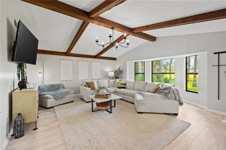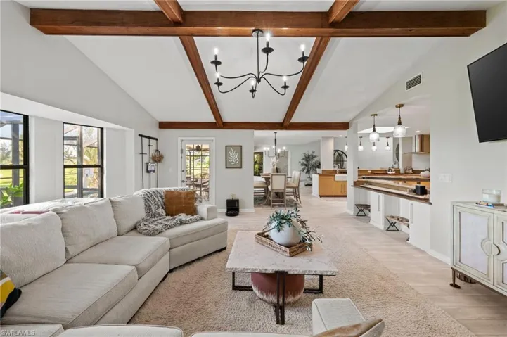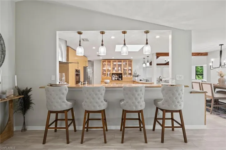 Seller Says Bring Your Offers! Eagle Ridge, S Fort Myers. Rare updated home on 1/2 acre lot! Featuring 3-bedroom, 3-bathroom home, perfectly situated to overlook the serene golf course and two picturesque ponds. Every room of this residence has been thoughtfully renovated to create an oasis of style and comfort, ensuring you get the very best in modern living. Custom master closets provide ample storage making organization a breeze while adding a touch of luxury. Master en suite boasts an extra large shower. Brand-new roof installed in 2023, offering a 20 year warranty through the Platinum Owens Corning shingles! Meticulously maintained with many updates: Water Heater (2024), Pool Heater (2023), All New LVP Flooring (2024), Interior/Exterior Paint (2022) and A/C (2021) just to name a few! Crystal-clear, Low-maintenance saltwater pool, offering a refreshing escape during hot summer days or over flowing hot tub on the cooler nights. The expansive deck is perfect for lounging, sunbathing, or hosting gatherings. Host your guests with a fully equipped outdoor bar featuring a built-in cook top, & speakers. Don’t miss your chance to own this extraordinary home that seamlessly blends luxury, comfort, and breathtaking views. Eagle Ridge is located in South Fort Myers off Daniels Parkway, east of Six Mile Cypress Parkway. This location provides convenient access to Gulf beaches, Downtown Fort Myers, I-75, RSW Airport, Whole Foods Market, Bell Tower and more.