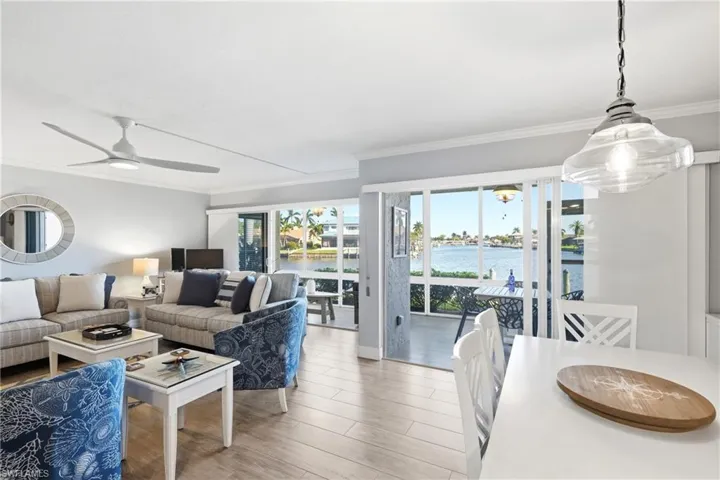 Boat lifts have been approved!! Hurry! Ask for details. This beautifully updated and MOVE-IN-READY, FIRST-FLOOR 2-bedroom, 2-bath condo is located in Southeast Cape Coral’s most desirable Beach Parkway area. The VIEWS from this home are unbelievable This renovated end unit offers panoramic views of a 200-ft-wide canal with DIRECT SAILBOAT ACCESS and NO BRIDGES, just moments to the Caloosahatchee River. Dock your boat right behind your unit accommodating up to a 30-ft. boat, making this a true boater’s dream. Inside, the light-filled open floor plan features two triple sliding glass doors that showcase stunning water views and seamlessly blend indoor and outdoor living. The home has been tastefully updated throughout, featuring a beautifully renovated kitchen with quartz countertops, custom cabinetry, and updated appliances. Both bathrooms have been upgraded with quality finishes, Relax and entertain in the enclosed and screened lanai, perfect for enjoying year-round waterfront living.