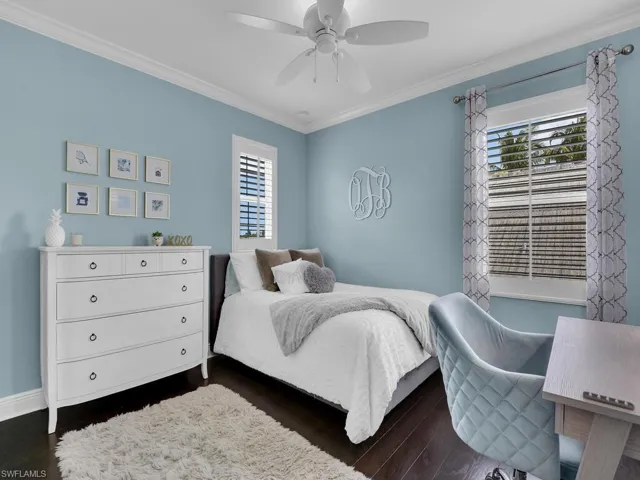 A plethora of upgrades adorn this home, including crown molding throughout, custom closet systems, plantation shutters, Sonos sound system, and quartz countertops in all baths. The first floor boasts ceramic tile throughout, while hardwood floors grace the office and staircase, as well as the upstairs bedrooms and bonus loft/family room.