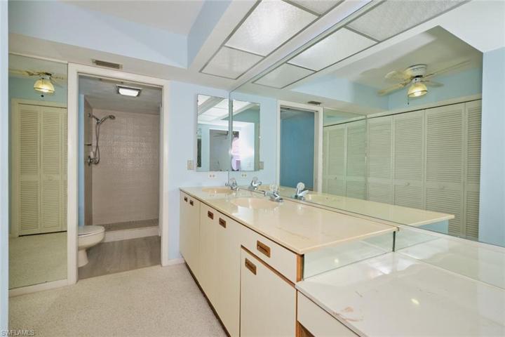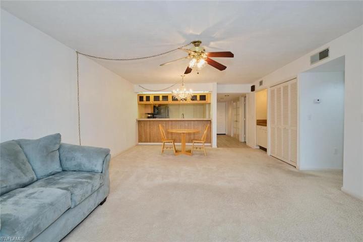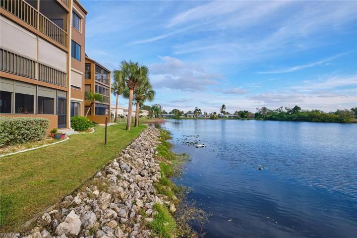 Great views of lake and preserve from the primary bedroom, living area and the screened balcony. Primary bedroom and bath are roomy, bath has 2 large closets and dual sinks. In the main living area you will find a great water view as well as a wet bar, a pass thru to kitchen which is great for entertaining and plenty of space to relax and take in the view.