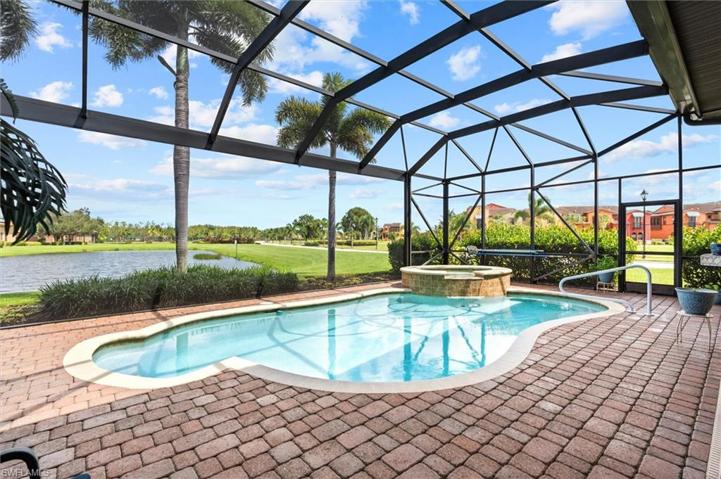 TURNKEY OPTIONAL! Welcome to this immaculate 3 bedroom plus den, waterfront Montessa pool home nestled in the highly sought-after community of Paseo. The spacious and open floor plan seamlessly connects the dining, kitchen, and living spaces creating the perfect environment for entertainment and quality time. The kitchen boasts top-of-the-line stainless steel LG smart appliances, upgraded granite countertops, and a large island. Offering the perfect blend of indoor and outdoor living, you’ll find yourself drawn to the beautiful waterfront pool and spa which features a panoramic screened in lanai surrounded by beautiful landscaping. This home offers many desirable features throughout such as plantation shutters, new carpeting in bedrooms, seamless showers & custom paint. In addition, new tile roof just installed (2023), new water heater 2022 and a smart security system. The spacious master suite includes a soaking tub, walk in shower, dual vanities and two walk in closets. Additional bedrooms are generously sized, perfect for family members or guests. The amenities in Paseo are unmatched offering a resort style community pool, tiki bar, restaurants, tennis courts, large gym, movie theatre and more!