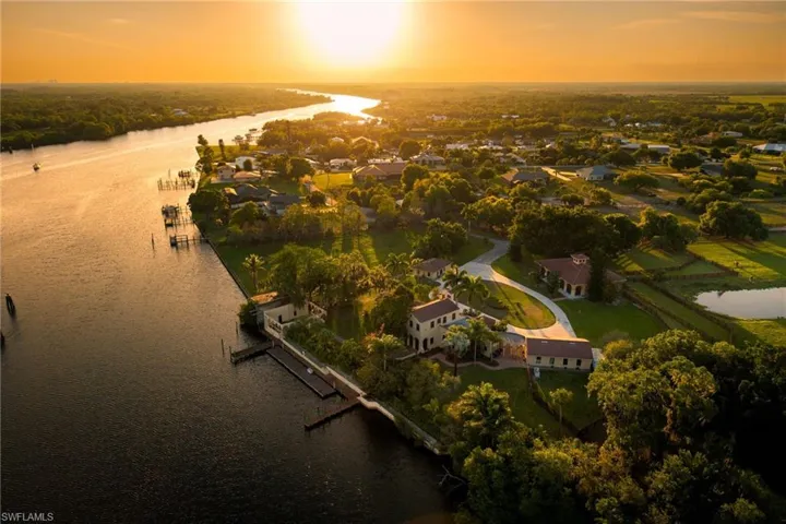 Set just west of the Franklin Locks, this extraordinary riverfront estate is a rare offering where expansive acreage, historic character, & navigable waterfront converge—something seldom found in SWFL. Spanning nearly 26 acres with approximately 850 feet of Caloosahatchee River frontage, this is not simply a property—it is a private sanctuary of scale, presence, and possibility. A long, winding drive introduces the estate with a sense of arrival reserved for truly distinguished properties. Towering oaks, open pastures, & sweeping river views create a landscape that feels both grand & timeless—an increasingly rare combination of usable acreage & deep-water access.