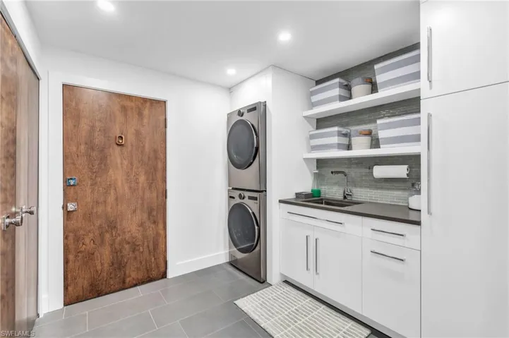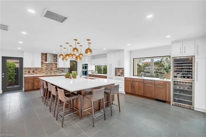 The gourmet kitchen is a chef’s dream, equipped with high-end stainless steel appliances, including a concealed refrigerator, induction cooktop, built-in espresso machine, ice maker, wine coolers and multiple sinks. Custom soft-close cabinets, deep pull-out drawers and quartz countertops with hidden charging outlets provide both function and luxury. The entire home is finished with sleek 5.5-inch baseboards, adding a touch of sophistication.