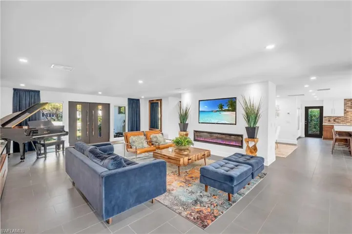 This completely renovated 4-bedroom, 4.5-bathroom home spans more than 3,000 square feet, showcasing a seamless design that connects every space. Each room offers direct access to the outdoors, enhancing the feeling of indoor-outdoor living. The living room is centered around an elegant electric fireplace, elevated by recessed lighting that adds ambiance and warmth. Custom window treatments throughout the home provide both style and privacy.