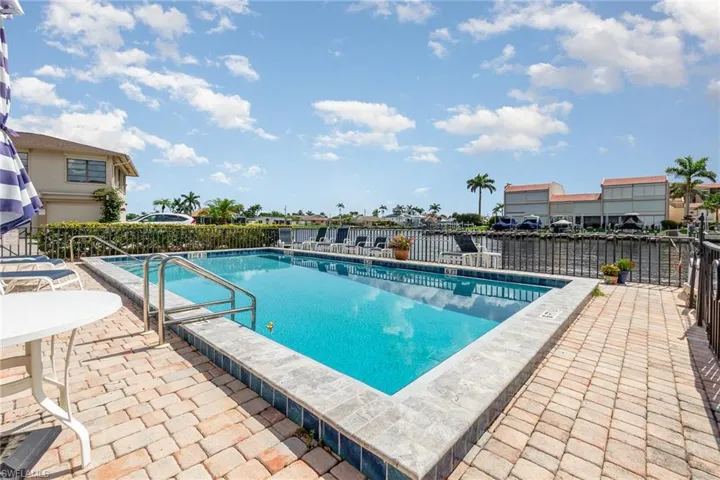 As a desirable end unit, the home is filled with natural light from multiple hurricane-impact windows and sliding doors. The oversized, east-facing lanai provides serene waterfront views—perfect for morning coffee or evening unwinding. Just steps away, a community pool offers a convenient extension of your outdoor living, ideal for a refreshing swim or relaxing afternoons in the Florida sunshine.