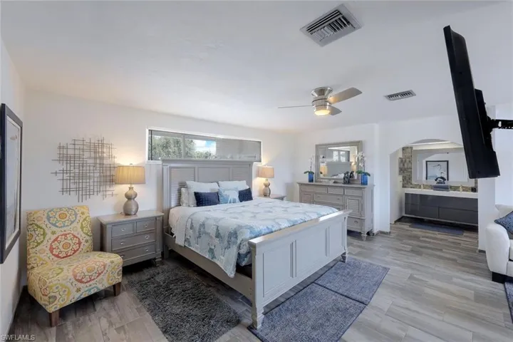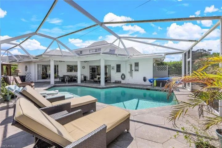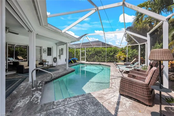 Recent price reduction, this home is a great value! Charming Beachside Escape – Discover this updated 4-bedroom gem just blocks from the beach in the sought-after south end of the island. The home features elegant tile flooring, a modern kitchen, updated bathrooms, and dual primary suites—one upstairs and one on the lower level. Enjoy the luxury of a private outdoor oasis with a lush lanai and sparkling pool. Additional perks include a new roof (2017) and electric lanai shutters (2016). Ideal as a tranquil retreat or a profitable rental with a strong rental history.