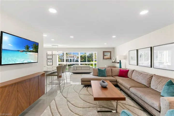 Prepare to be captivated by the view! This exquisitely updated second-floor, two-bedroom, two-bath condominium in the Ambassador Club at The Moorings boasts floor-to-ceiling windows framing breathtaking panoramic views of Hurricane Harbor. Designed with modern elegance, it features sleek polished tile floors, quartzite countertops, and a sophisticated kitchen with stainless steel appliances and a stylish breakfast bar. Ideally on the south end of Gulf Shore Boulevard N, dubbed the Miracle Mile, you’re across from the beach and moments from the upcoming Four Seasons Naples and world-class shopping and dining of 5th Avenue South. Enjoy direct gulf access, a floating dock for kayak and paddle board launch, a heated community pool, and boat slips available for lease only at $1,200 a year. Additional conveniences include an on-site manager, laundry facilities and a deeded parking space. Recent building updates include a tile roof in 2014, a seawall and docks 2016. Eligible for optional Moorings Beach Park membership.