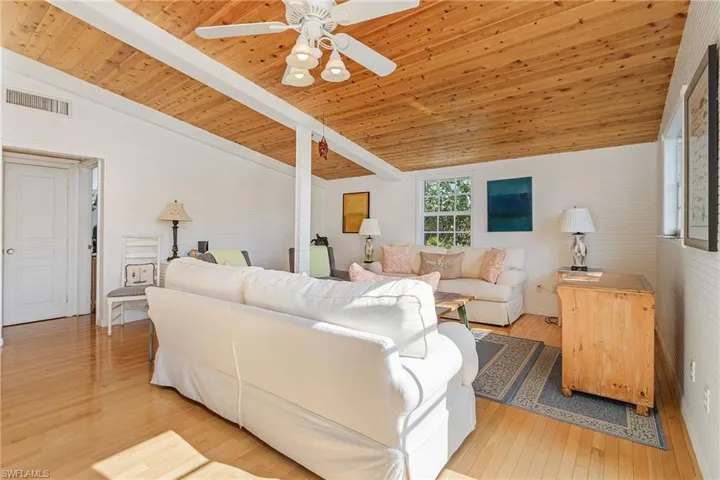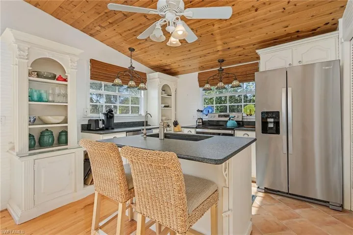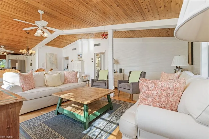 Absolutely adorable near beach elevated cottage with private fenced pool to rear of home. Deeded beach access is less than 3/10 of a mile down Rabbit Road at the intersection of West Gulf Drive. Home features two bedrooms and two full bathrooms, living/dining area with Knotty Cedar Plank Ceilings, Oak Hardwood flooring and 3/4″ Bead Board throughout the entire home. Granite countertops in kitchen with farm style sink and all new appliances, as well as large walk-in pantry. There is private screened-in porch off the primary bedroom with staircase leading down to the pool area. The home is quite unique, as it was built entirely with steel beams to withstand the strongest winds. Home suffered no interior damage from our 2022 hurricane and new roof was completed prior to it in 2022. Plenty of passive storage below the home on concrete slab. Home is being offered turn-key!