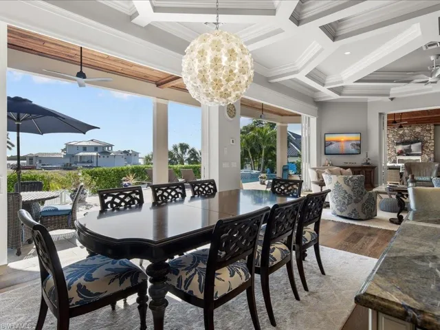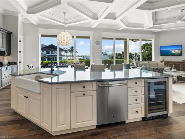 HERE IS YOUR OPPORTUNITY TO OWN A ONE OF A KIND CUSTOM HOME BUILT WITH TOP OF THE LINE FINISHES AND IS BEING OFFERED BEAUTIFULLY FURNISHED IN THE ESTATE SECTION OF MARCO ISLAND. SIT ON THE LANAI BY THE RESORT STYLE POOL AND SPA, AND SOAK IN THE SUN WITH THE BREATHTAKING VIEWS. THE WATERFRONT FEATURES A MODERN DOCK WITH 3 LIFTS INCLUDING A 24,OOO BOAT LIFT, 4,500 DOUBLE JET SKI LIFT, AND A 14 X 15 PLATFORM LIFT. THE STUNNING COVERED LANAI HAS A SUMMER KITCHEN, IMPRESSIVE FIRE PLACE, DESIGNER FURNITURE, WITH ELECTRIC SCREENS AND SHUTTERS. STEP INSIDE THE RESIDENCE TO EXPERIENCE A COASTAL DESIGN OF CASUAL ELEGANCE WITH WINDOW WALLS AS YOUR BACKDROP COMPLEMENTED WITH COFFERED CEILINGS AND HAND CRAFTED CROWN MOLDINGS. THE CHEFS DREAM KITCHEN IS ENHANCED WITH IMPORTED GRANITE COUNTERS WITH AN EXPANSIVE ISLAND, STATE OF THE ART GAS COOKTOP, AND STAINLESS APPLIANCES. THE HOME HAS 2 LUXURIOUS PRIMARY SUITES WITH HOTEL INSPIRED BATHS. THERE ARE 2 ADDITIONAL BEDROOM EN-SUITES AND 2 LAUNDRY ROOMS PLUS A POOL BATH. ADDITIONAL UPGRADES INCLUDE, WHOLE HOUSE GENERATOR, 3 AC SYSTEMS WITH 2 DEHUMIDIFIERS, 2 TANKLESS GAS WATER HEATERS, INSTANT HOT WATER CIRCULATION, 2 WET BARS AND A 400 BOTTLE WINE CABINET, SALTLESS WATER SOFTENER SYSTEM, 16.5 FEET FIRST FLOOR ELEVATION, CLIMATE CONTROLLED 4 CAR GARAGE, 3 FLOOR ELEVATOR, IMPACT GLASS AND MORE. THIS IS TRULY A MUST SEE ESTATE.