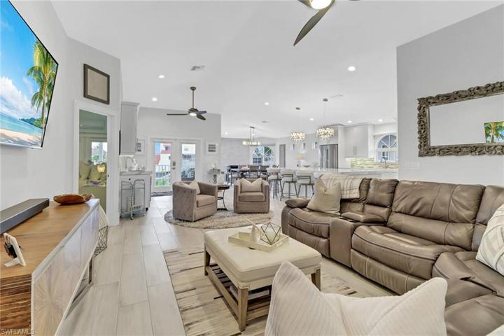 PRICE REFRESH! Offering a quick 3 minute walk to our white sandy beaches and direct Gulf Access from your private boat lift! Welcome to your dream coastal retreat. This exquisitely remodeled 4-bedroom, 3-bath home in the desirable Carolands neighborhood on Bonita Beach comes completely furnished and ready for your immediate occupancy. With tasteful renovations throughout, this home exudes a Light Coastal Design that perfectly complements its tropical paradise location. Situated on a Gulf Accessible corner lot, this property boasts an expansive pool area, perfect for entertaining friends and family. When you’re ready for some sand between your toes, a short walk from your front door leads you to pristine beach access. Enjoy a day on the water from your private dock providing quick and easy access to the Gulf of Mexico. As you step inside, you’ll be greeted by vaulted ceilings that create an airy and spacious atmosphere. The open floor plan allows an abundance of natural light to pour in from all sides, making everyday feel like a beach vacation. The renovation spared no expense, with a brand-new kitchen that will delight any chef. There’s even a walk-up bar complete with dual wine coolers and a beverage cooler along with a dining area offering picture perfect views. Don’t miss this opportunity to live the Florida beachfront lifestyle you’ve always dreamed of. Schedule your private tour today!
