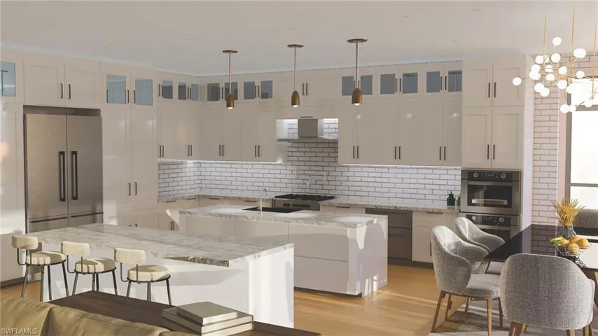 Aurora was meticulously planned and designed to provide its residents carefree living with all the features and amenities of a waterfront single family luxury home. The impressive interior features include open floorplans designed to maximize the wide views of the Imperial River, state of the art kitchens with gas Wolfe ranges, SubZero refrigerators custom kitchen cabinets to the ceiling, Quartz countertops, wood flooring throughout, 11’ ceilings, fireplaces, lanais with electric screens shutters, summer kitchens with gas grills, all bedrooms have en suite bathrooms, 2-4 garages with large storage areas, plus piece of mind of latest hurricane codes, a whole building natural gas generator and ISO 4 non-combustible construction for the lowest possible insurance rates. The exterior amenities are just as impressive with gated entry, state of the art boat docks with lifts provide premier boating and direct Gulf access, Clubhouse with fitness, kitchen for parties, indoor outdoor bar all overlooking the tropical resort style pool and the marina, plus optional air-conditioned cabanas. Aurora also offers the perfect location, a private riverfront setting yet easy access to US 41, shopping, entertainment and the beach. Condo 401 in Building I is located on the 4th floor end where all views are of the Imperial River and Nature. This condo offers over 3,293 total square feet of living space plus the garage and storage. Features include a large walk behind bar with seating for four, 3 bedrooms plus den, 3 1/2 baths, large living areas and over 506 sq ft outdoor covered lanai/balconies with summer kitchen with natural gas grill and electric screens & shutters. Now accepting reservations for fall 2027 delivery at initial pricing. All site work, pilings, and pads complete. Note: Coming soon – Windsor Road will be extended behind the Publix shopping center to US 41 for easy access from Aurora to US 41 without the need to drive to Bonita Beach Road. Property photos contain virtual renderings.
