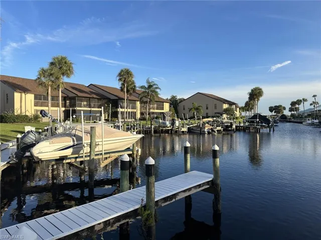 SECOND FLOOR OVERLOOKING THE MARINA WITH EXPANSIVE WATER VIEWS! Direct access to River/Gulf. This 2 bedroom 2 bath is located in Admiralty Yacht Club w/ resort like facilities. UNIT COMES WITH A BOAT DOCK AND LIFT! Enjoy the beautiful sunset every night from the oversized South Westerly facing patio. Vaulted Ceilings makes the unit light, bright, and airy. This unit has 2 patios. Enjoy your coffee off the kitchen patio with the morning sun and a glass of wine on the screened in rear patio at night. Effortlessly jump on your boat and go fishing or enjoy an afternoon on the water. Dock is only a 2 minute idle to the Caloosahatchee River! Unit is in good original condition and ready for your upgrades. Unit is being sold AS-IS. Conveniently located to South West Florida Airport and Punta Gorda, close to 1-75, shopping, dining, and other leisurely activities. A rarely available unit with an amazing view and dock don’t let this one slip away.