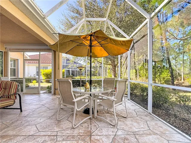 Major updates provide peace of mind, including a new A/C in 2022, hot water heater in 2019, and full hurricane protection with accordion shutters and Storm Smart hurricane screens for the lanai. The stamped concrete driveway and lanai enhance the home’s curb appeal, while expansive collapsible sliders, a screened loggia, and garage Skeeter Beater allow refreshing breezes to flow effortlessly, blending indoor and outdoor living.