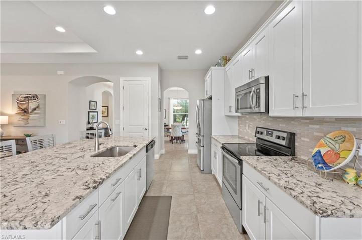 Enjoy maintenance free living in this lovely 2 bed, 2 bath home. Placed in the gated Pelican Preserve community, this must see ranch home has been extremely well maintained & leaves room for endless possibilities. The fabulous community also offers full upscale amenities like pools, tennis courts, fitness center, tennis courts, pickle ball courts, & walking ways for biking. Enter inside the foyer with high ceilings & immediately admire the open main living area with seamless entertainment to the living room, & kitchen. This open kitchen comes fully equipped with all appliances, ample cabinetry, beautiful countertops, and room for bar seating. Across from the living room, sliding glass doors open up to the patio into a spacious backyard. The master suite has plush carpeting & neutral interior. The master suite includes a large attached full bath with dual sinks, & walk-in shower. You will find the additional bedroom with a neutral interior and plush carpeting as well. Other features include a patio & attached 2-car garage with additional storage & parking for guests.