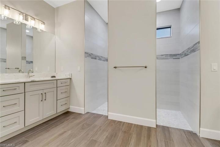 *** CAN CONTINUE TO BE SHOWN – PROPERTY HAS A CONTRACT WITH A KICKOUT CLAUSE *** BRAND NEW Custom Home built by Ramos Builders located in highly sought after SW Cape Coral neighborhood. With Quick access to Veterans Pkwy, enjoy being near the center of the city and take advantage of just a few minute ride to the best shopping, dining and entertainment Cape Coral has to offer. This new construction home boasts 3 bed+ den, 2 baths, 3 car garage and near 2,000 Sq.ft. Porcelain tile throughout! Open kitchen features quartz counter tops, upgraded pendant lighting, glass tile backsplash, stainless steel appliances, spacious pantry, glass top range with upgraded hood and overlooks the screened lanai area through 90 degree sliders making this an ideal entertainment setup! IMPACT RATED WINDOWS AND DOORS!! Seller has transferable flood policy. Room for pool and guest bath is pool bath. Main suite is spacious and main suite bathroom offers dual vanities with tons of counter space, upgraded lighting and passthrough shower with transom window for natural light! Back lanai has paver floor, fans, recessed lighting, custom screen and is wired to hang a TV.