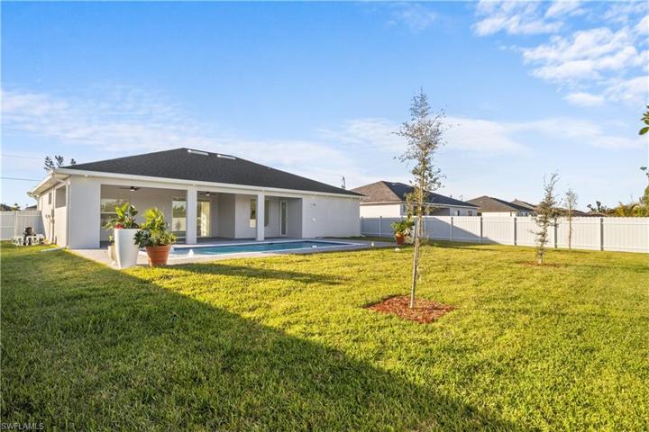 New construction with a beautiful pool. In city water and sewer. Not in flood zone. Quartz countertops in kitchen and bathrooms with stainless steel kitchen appliances and solid wood cabinetry. The master bath offers a shower, bathtub and double sinks. The interior of the home boasts double door entry, impact resistant windows and doors, double step ceiling in the living room and master bedroom, porcelain tile throughout the house. Automatic sprinkler system and fenced yard. Extra Large Lanai with summer kitchen. Seller will provide 1 year builder warranty and a subsequent 2-10 Home Buyers Warranty (10-Year Structural Coverage) at closing. Don’t miss this opportunity!