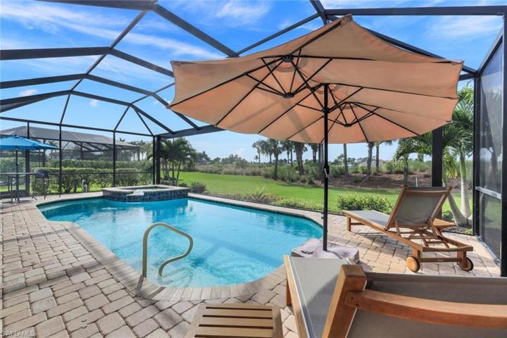 Breathtaking views of the sunset over Stone Lake along with golf course views await you in this elegant home. Step inside and be greeted with endless upgrades. The Bosch kitchen appliances make entertaining a breeze. All new lighting fixtures along with lighted tray ceilings illuminate every corner of this home, highlighting its beauty and charm. The great room has custom built in cabinets along with all the closets. The saltwater pool and spa provide a gentle and soothing experience, perfect for unwinding after a long day. The addition of an awning provides shade and protection, allowing you to enjoy the outdoors all year round. The picture window will ensure you don’t miss a sunset. The Quarry has over 500 acres of navigable lakes where residents enjoy boating, skiing, fishing, and kayaking. The Newly Renovated Beach Club just OPENED and will quickly become the place to be. Residents enjoy a lap pool, resort pool, fitness and wellness center, tennis, pickleball and bocce. Dining at its finest is available at the Indoor/Outdoor restaurant and Tiki Bar. The Quarry also has an impressive 18-hole championship golf course. Hurry, this will not last!