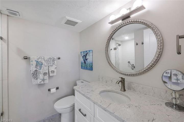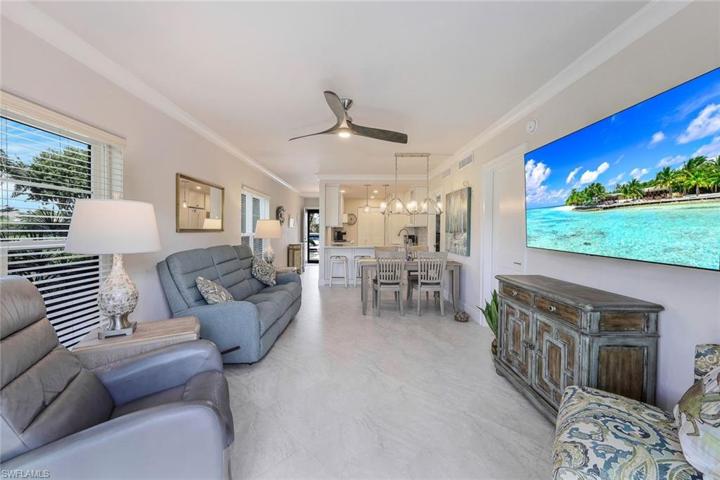 Completely remodeled ( in 2019 by Stonebreaker ) 2 bedroom / 2 bath end unit facing West and near pool. Property has been meticulously kept and updated. Some of the updates include raised ceiling in kitchen, new A/C in 2022 , hot water heater 2023, new Pella windows 2017-2018, doors, California Closets, bathrooms, kitchen, and new lanai cage 2017-2018. Short distance to beach and shops & restaurants on Collier. No damage from Hurricane Ian.