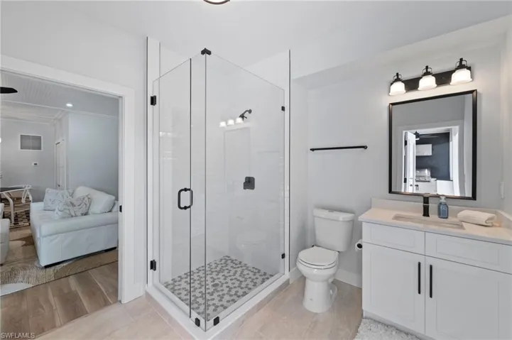 This home has it all! With 3 ensuite bedrooms on the main level, it is the perfect blend of luxury, functionality and breathtaking views. From the moment you step inside, the stunning bay view captures your attention, complemented by high-end features such as: Subzero refrigerator/freezer, subzero beverage drawers, Miele built-in coffee station, and warming drawer. Wolf oven and microwave. Fisher & Paykel double dishwasher. Custom cabinetry, Carrara marble counters and backsplash, pot filler and White oak plank flooring throughout! Pecky Cypress ceilings add charm in both the entry and dinette, new elevator, impact doors and windows with plantation shutters. The outdoor living area is equally as impressive with new cable railings and decking, new marble pool deck and outdoor kitchen. The finished lower level will “WOW” your visiting guests, with 2 bedrooms, a full bath, updated kitchen and appliances. Let’s not forget the amazing boat dock for all those toys to get you to the Gulf in 10 minutes. Plus, being just a short walk to Barefoot Beach adds an extra layer of desirability. It’s definitely a home that offers both style and function in a fantastic location!