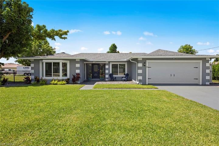 HIGH END RENOVATION FROM TOP TO BOTTOM WITH NO EXPENSE SPARED. This is the home that you have been waiting for! This WATERFRONT masterpiece feature 4 spacious bedrooms, 2.5 bathrooms and 2 car garage on a DOUBLE LOT with over 2,000 square feet of well appointed living area. New roof, all new impact windows, new lush landscaping/fence, 12×48 wood plank tile, designer lighting, RV PAD, quartz counters throughout, and a 10,000 pound boat lift is just a sampling of the features of this beautiful home. Enjoy the long water views from the private dock and enjoy the ocean!! This home has everything you could ever want and is a true slice of Southwest Florida paradise. Don’t miss out on this one, call today for your private showing!!