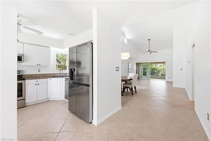 RARELY AVAILABLE TO RENT – UNFURNISHED. This 2 Bedroom and 2 Bath Villa with an attached garage, is tucked away on a quiet cul-de-sac in Lakeside. The Villa has fabulous upgrades including large tile floors laid on the diagonal, giving the whole space a great flow. The kitchen has granite countertops, freshly refaced cabinets, stainless steel appliances, and a nice spot for an eat-in table. You’ll also appreciate modern touches like recessed lighting and a tankless water heater. The screened lanai has been converted into a lovely tiled Florida room, giving you extra living space that you can open up to let a wonderful breeze through the house. The Side yard is beautiful and has a patio for sitting or barbecuing your dinner. Life in the Lakeside gated community is like living at a resort. Centered around a 40-acre lake, you’ll have access to two swimming pools, a spa, and a two-story clubhouse with a sauna, weight room, library, and game rooms. If you like to stay active, you’ll love the five clay tennis courts, pickleball, bocce, and basketball courts. A 1.5-mile walking path meanders through the beautifully landscaped grounds, past two lighted fountains on the lake. Best of all, the location is perfect. You’re just 5 minutes from Mercato, 10 minutes from Vanderbilt Beach, and only 20 minutes from downtown.